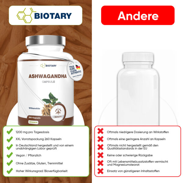 Ashwagandha- Wurzelextrakt, Hydroxypropylmethylcellulose (pflanzliche Kapselhülle)