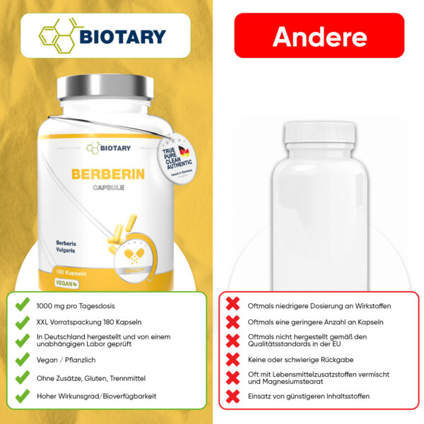 Berberin Extrakt (davon 97% Berberin HCL) Überzugsmittel: Hydroxypropylmethylcellulose (pflanzliche Kapselhülle), Schwarzer Pfeffer