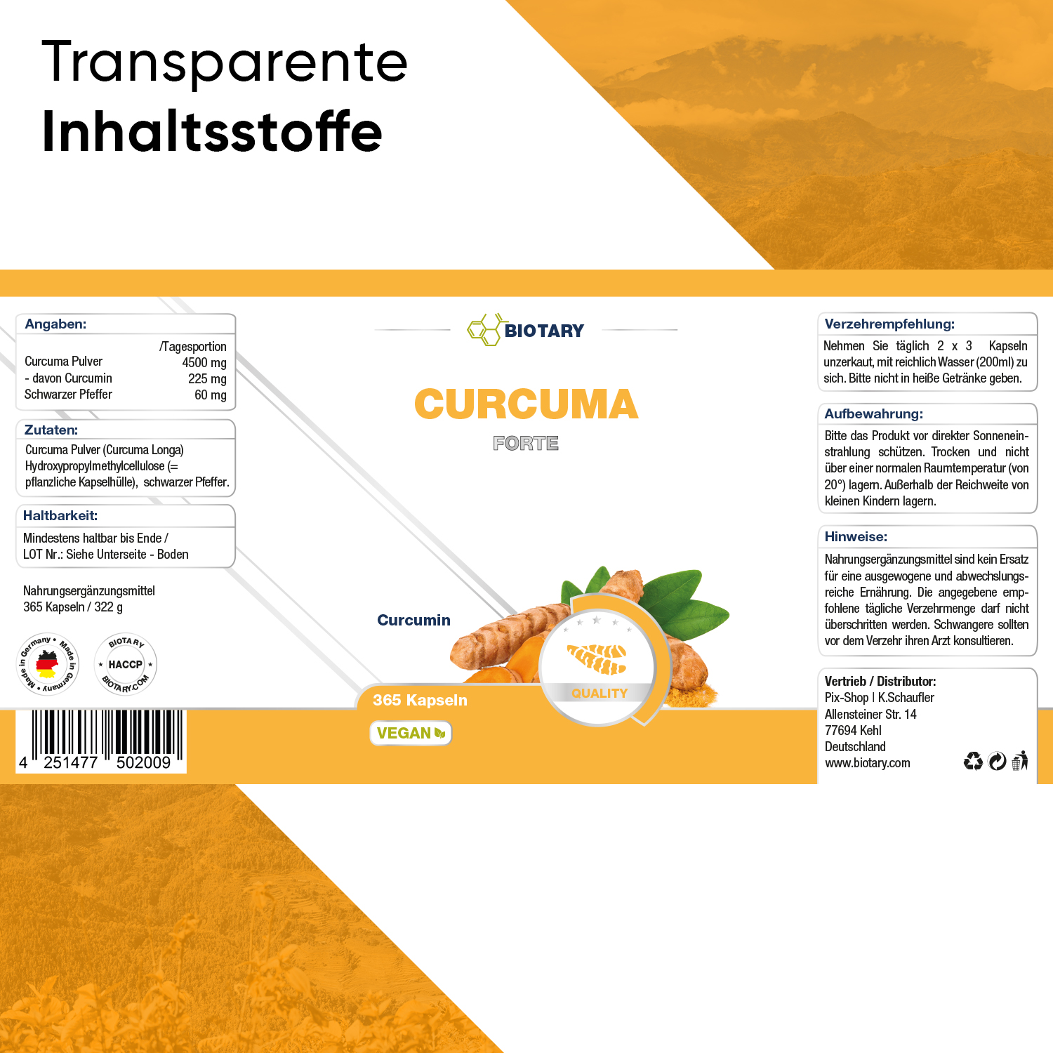 Curcuma Pulver (Curcuma Longa), Hydroxypropylmethylcellulose (= pflanzliche Kapselhülle), schwarzer Pfeffer.
