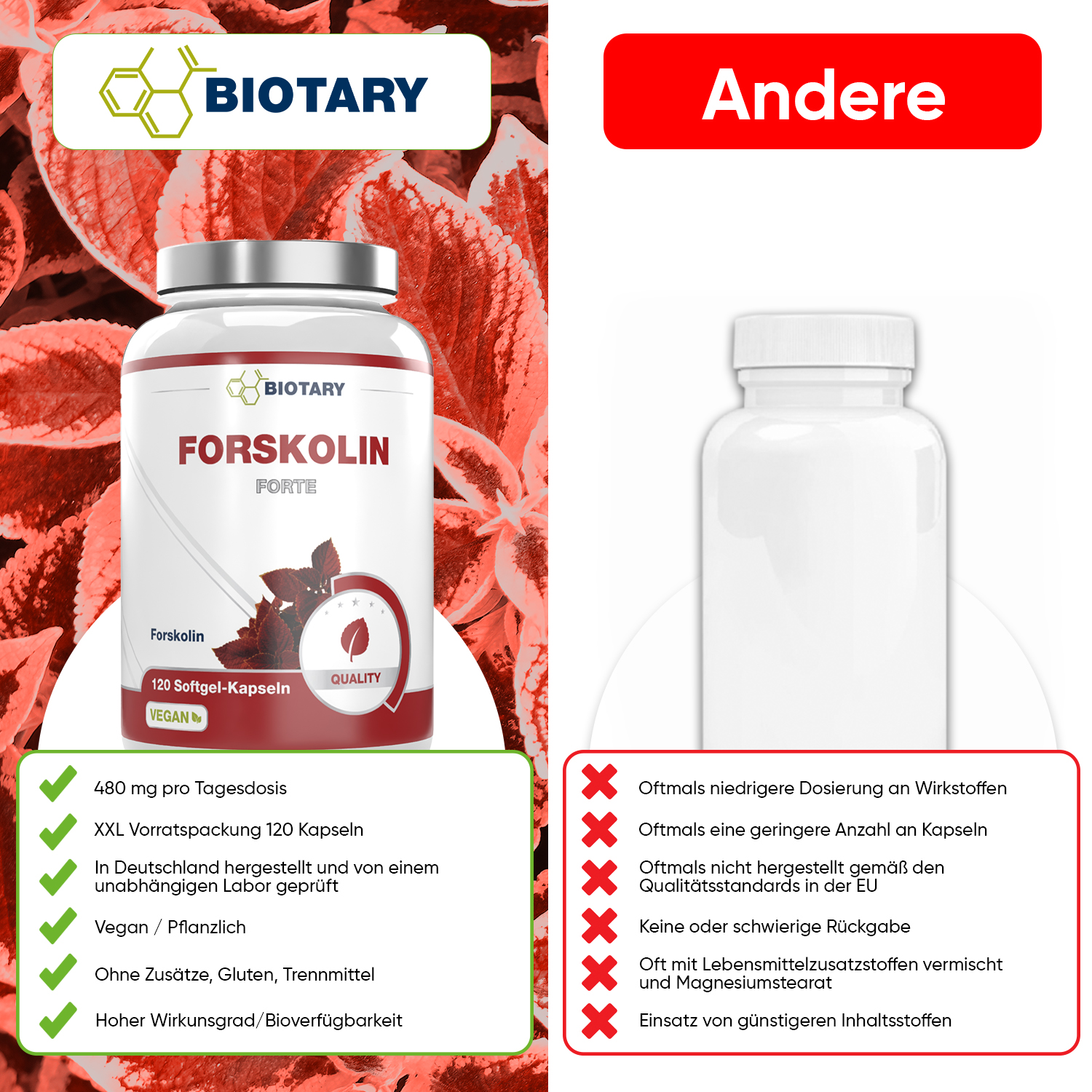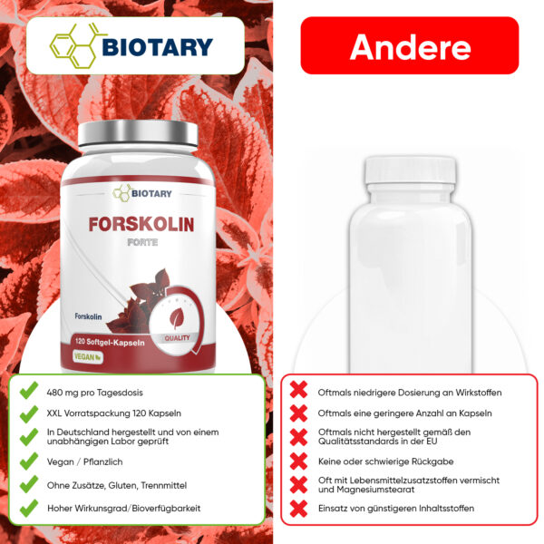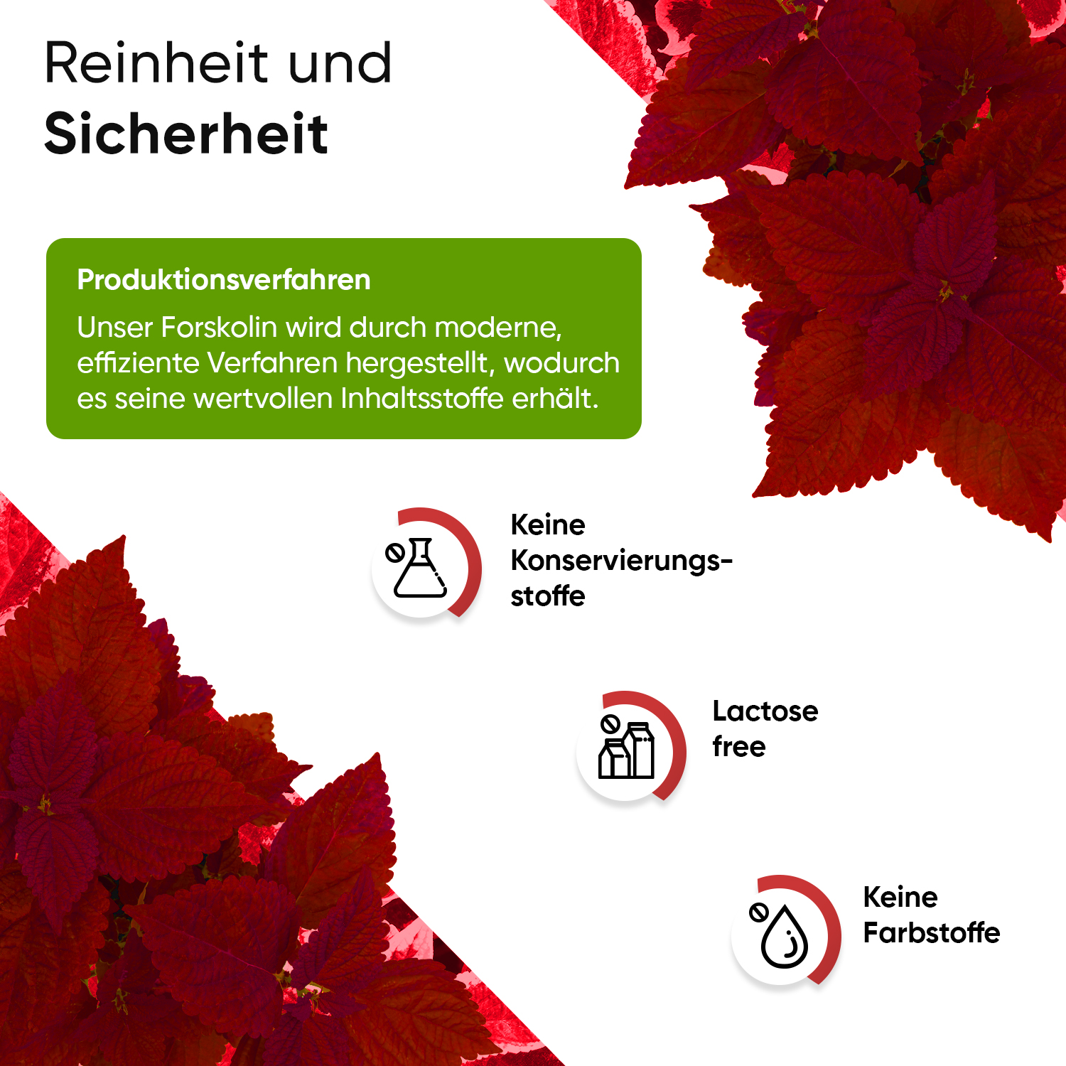 Forskolin Extrakt 20% (Coleus Forskohlii), Reismehl, Hydroxypropylmethylcellulose ( pflanzliche Kapselhülle).