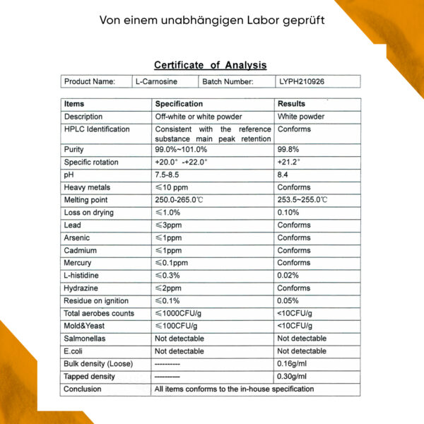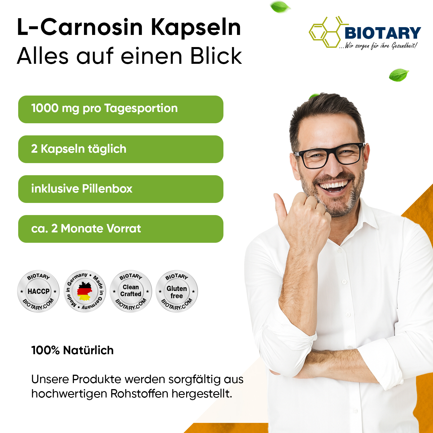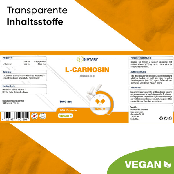 L-Carnosin (N-beta-Alanyl-Histidine), Hydroxypropylmethylcellulose (pflanzliche Kapselhülle)