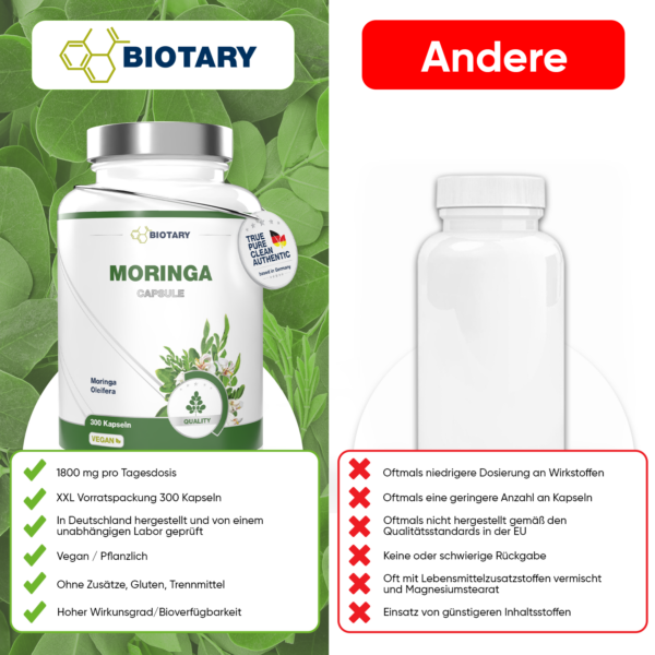 Moringa Oleifera Pulver, Überzugmittel: Hydroxypropylmethylcellulose (pflanzliche Kapselhülle)