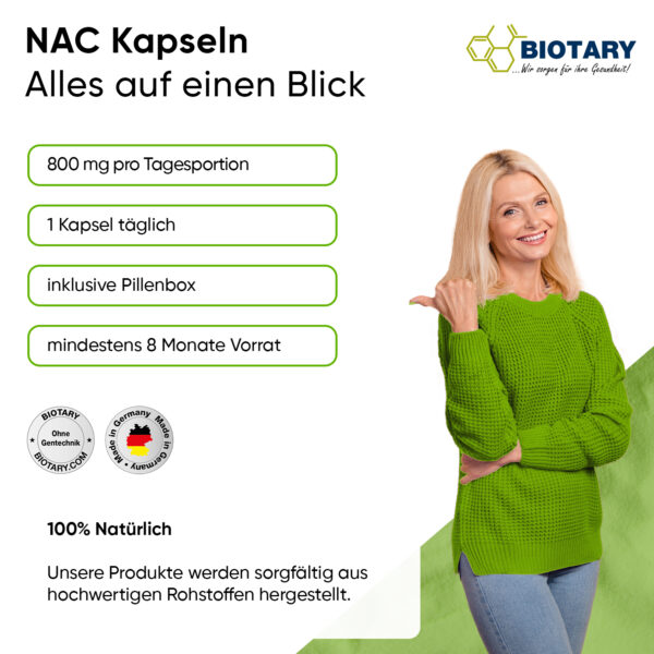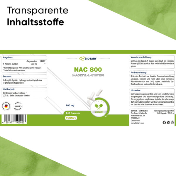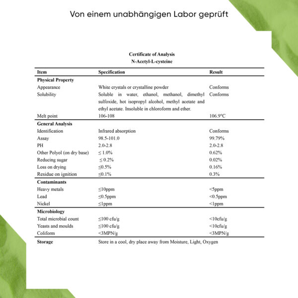 N-Acetyl-L-Cystein, pflanzliche Kapselhülle: Hydroxypropylmethylcellulose.