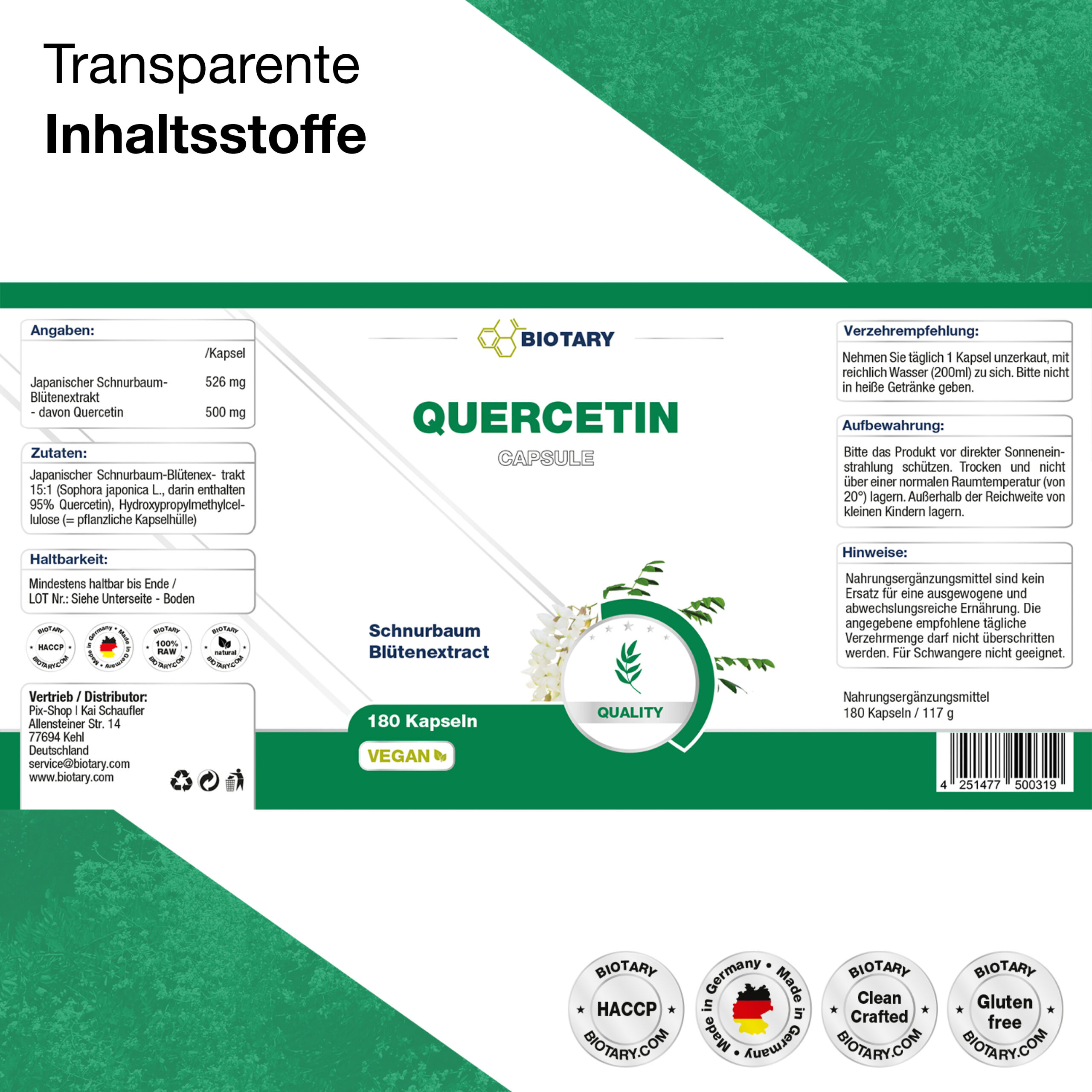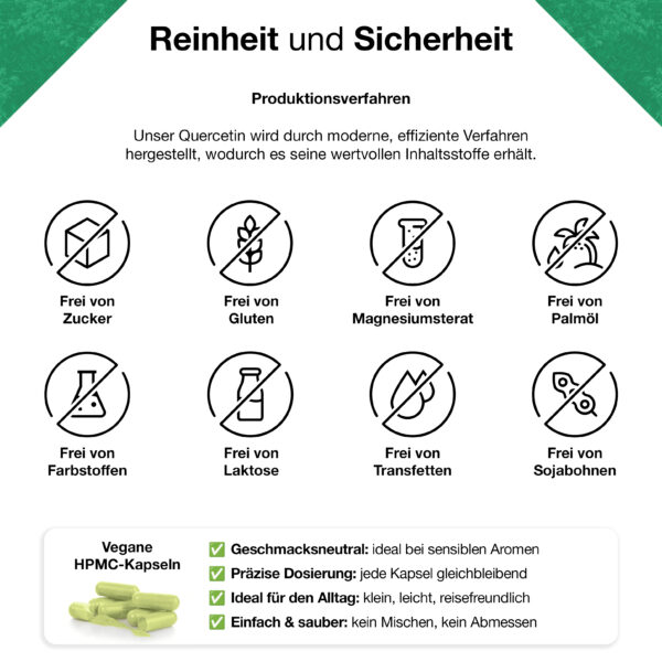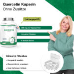 Japanischer Schnurbaum-Blütenextrakt 15:1 (Sophora japonica L., darin enthalten 98% Quercetin), Cellulose (pflanzliche Kapselhülle