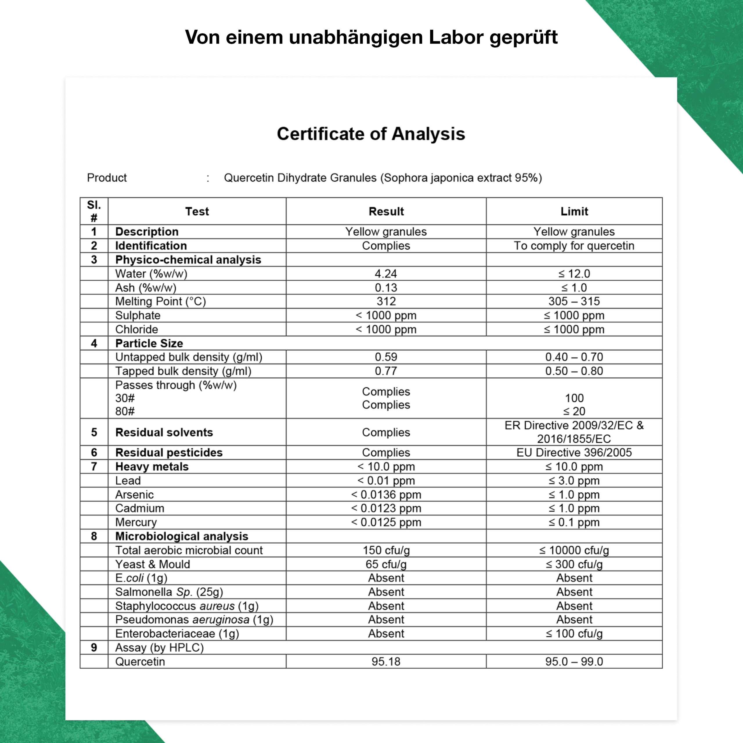| davon Quercetin | 500 mg | – |