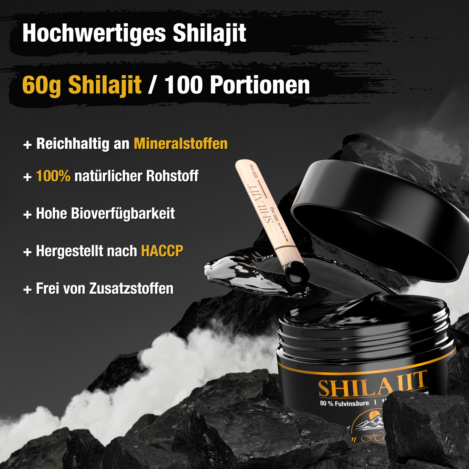 Shilajit-Harz (aus dem Himalaya in Gilgit-Baltistan in einer Höhe von 16.000-18.000 Fuß)