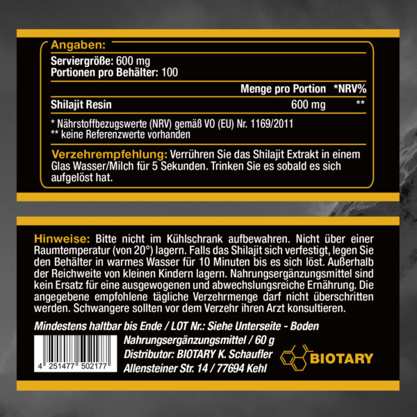 | Shilajit Resin | 600 mg | ** |