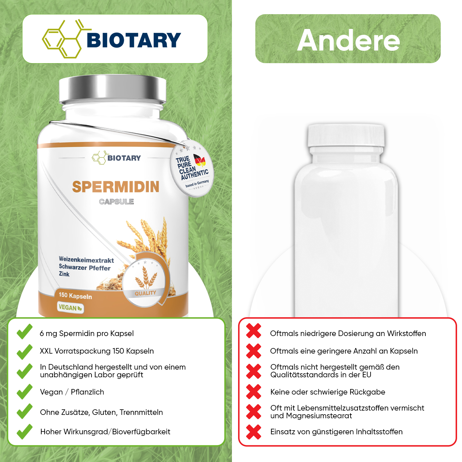 Weizenkeimextrakt, mit hohem Spermidingehalt, Hydroxypropylmethylcellulose (pflanzliche Kapselhülle) , schwarzer Pfeffer, Zinkbisglycinat