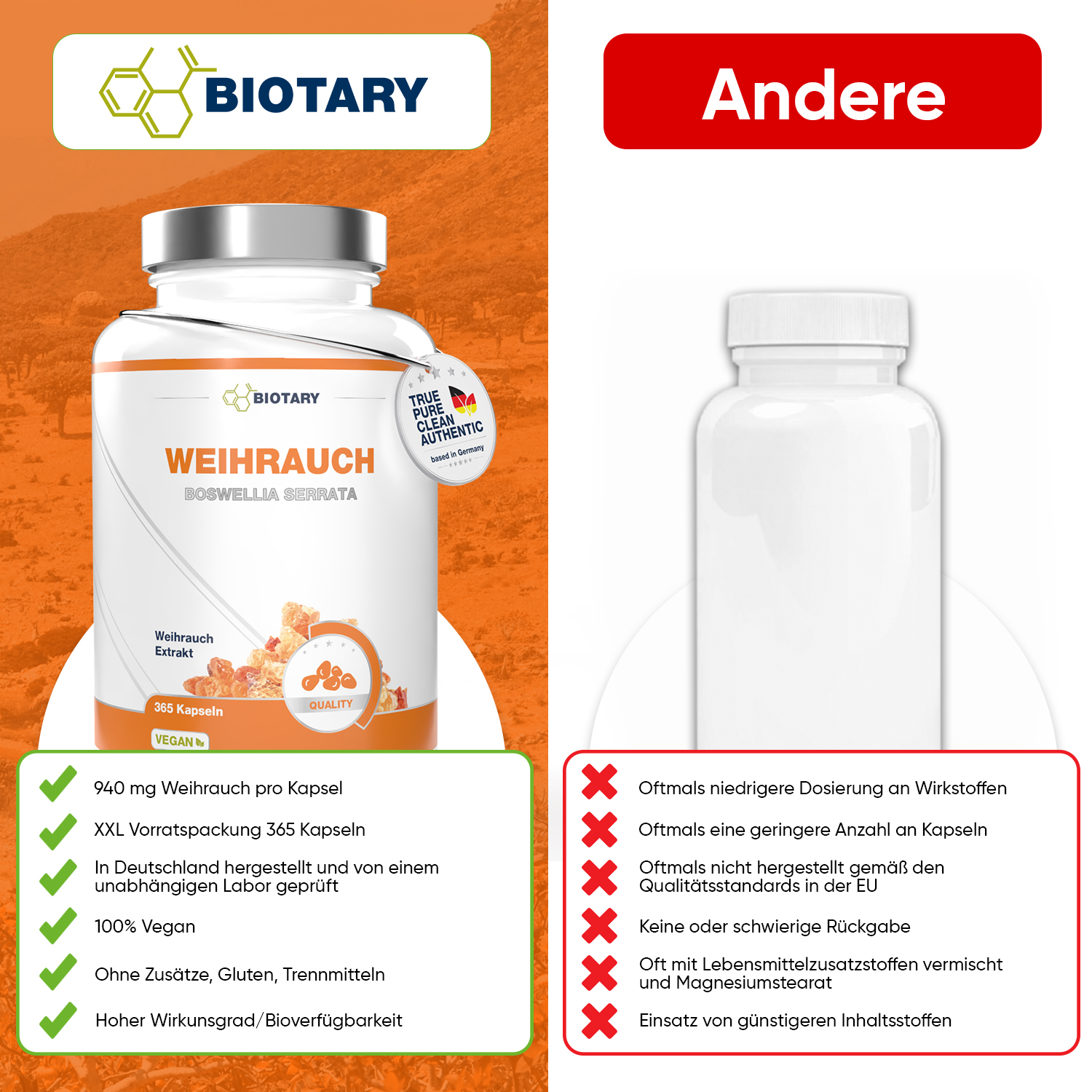 Weihrauch-Extrakt (Boswella Serrata, darin enthalten 85% Boswelliasäure), Cellulose (pflanzliche Kapselhülle)